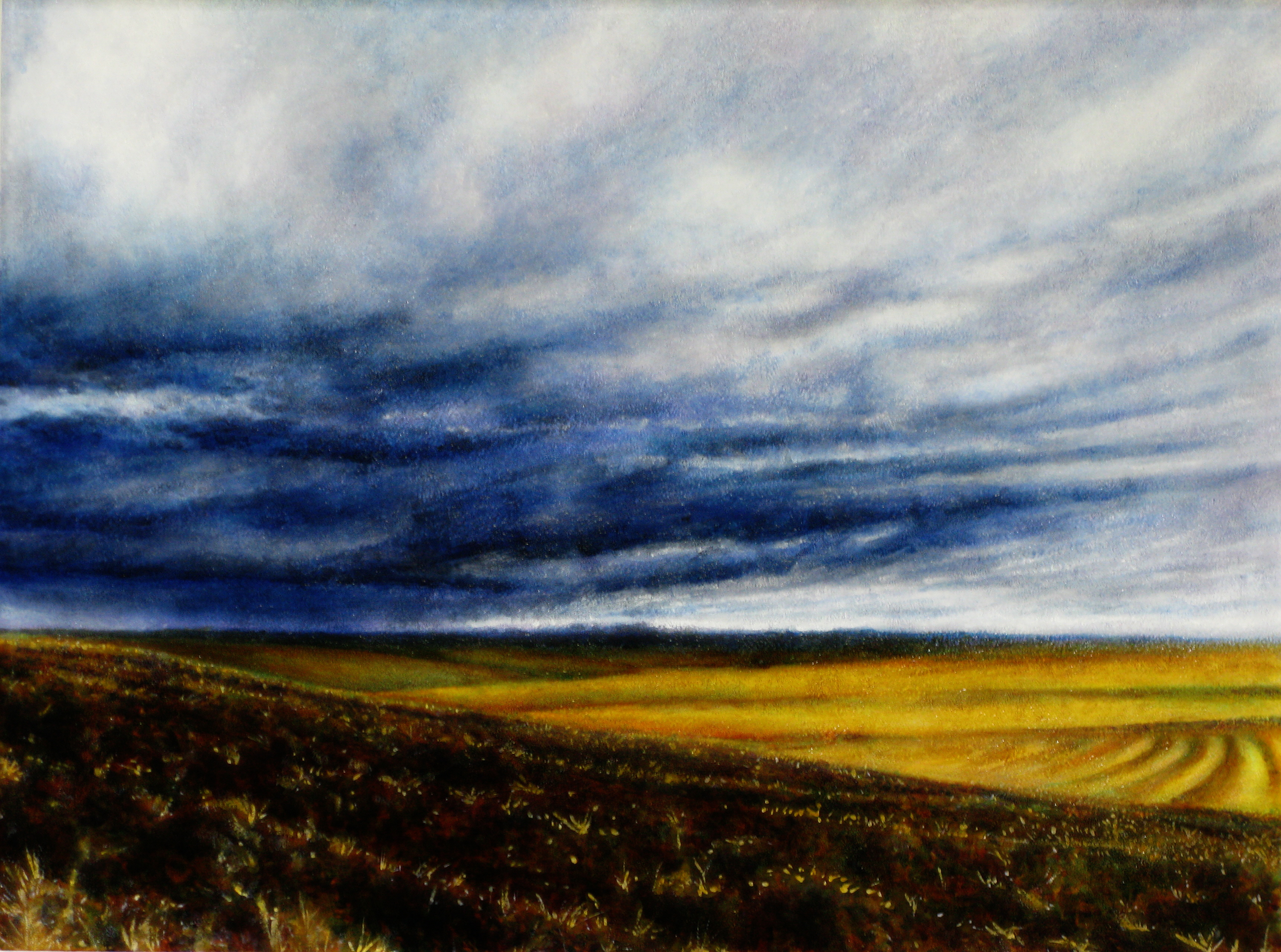 “Winter Sky,” oil on wood, 18″ x 24″